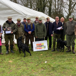 After a tricky retrieve on a gun-given mark across a river, we found ourselves clean and in the third and fourth rounds. We had two testing long range retrieves that Quinn made look very tidy, the last of which was on a strong runner. After being sent quickly and hitting the fall, he was left to work it out himself - which he did smartly and was complimented by 2 of the guns who happened to be A-panel judges.